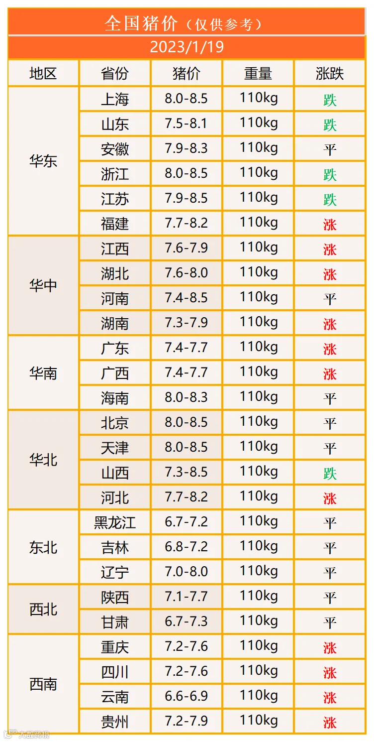 明日猪价2023年1月19日猪价信息