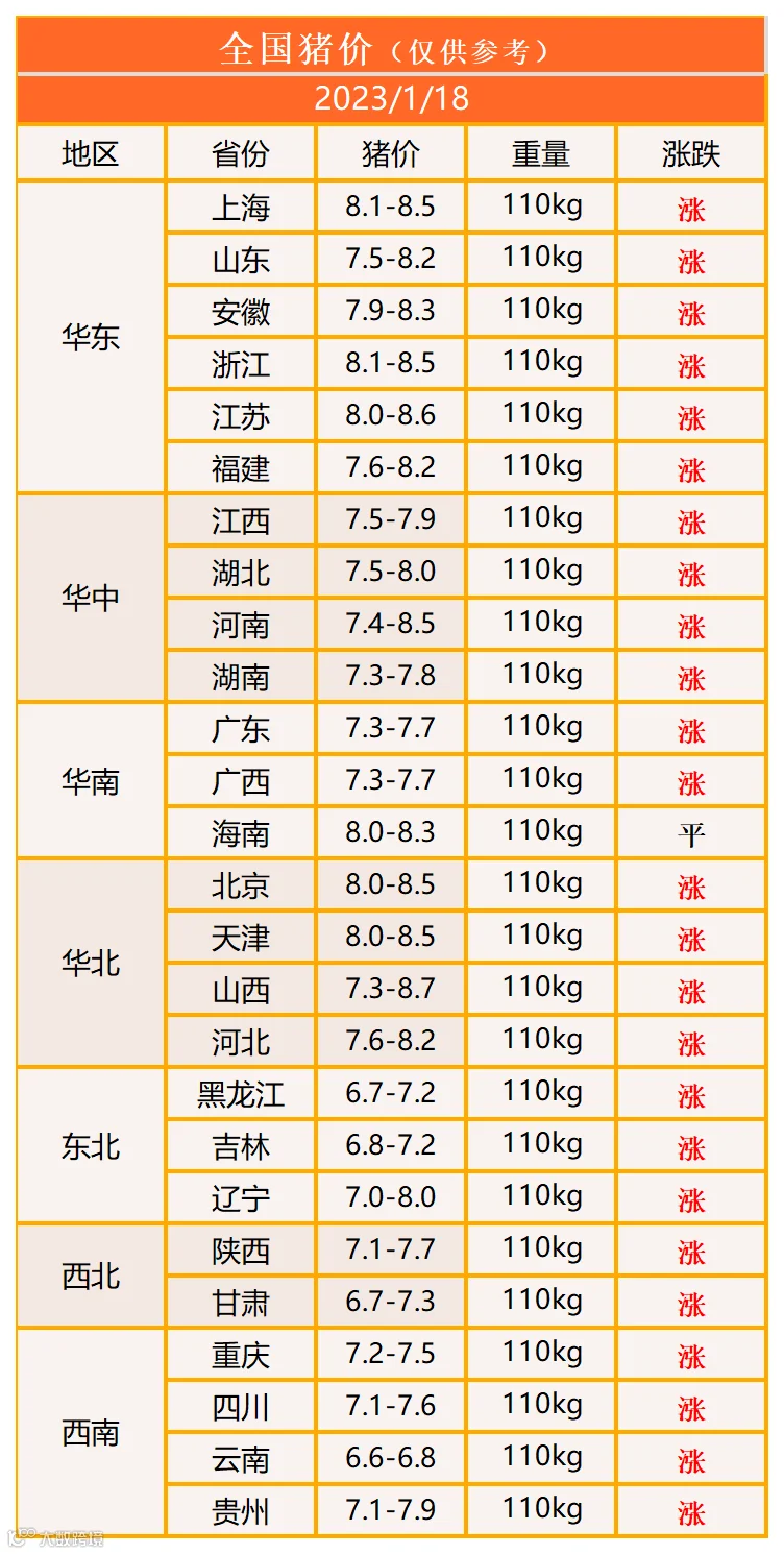 明日猪价2023年1月18日猪价信息