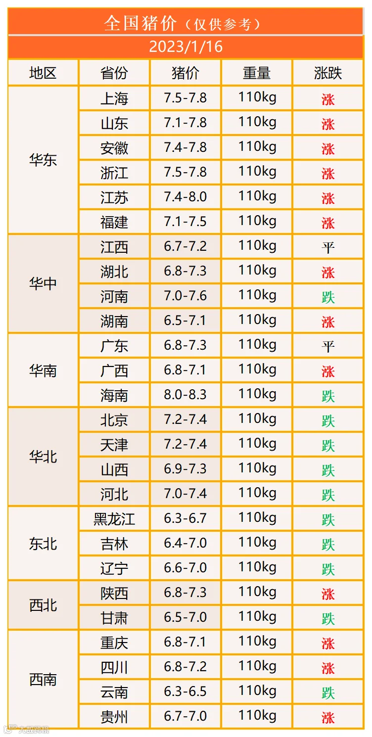 明日猪价2023年1月16日猪价信息