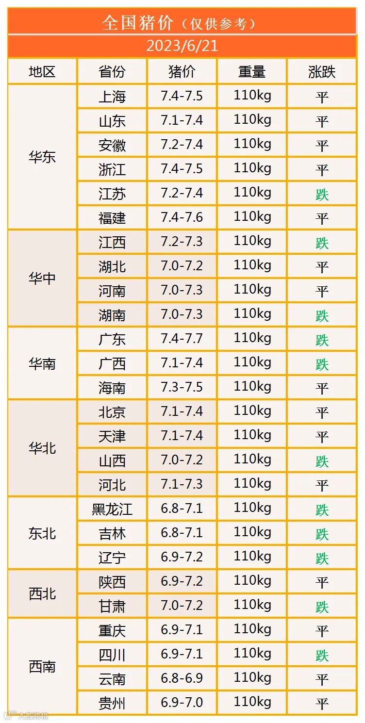 明日猪价2023年6月21日猪价信息