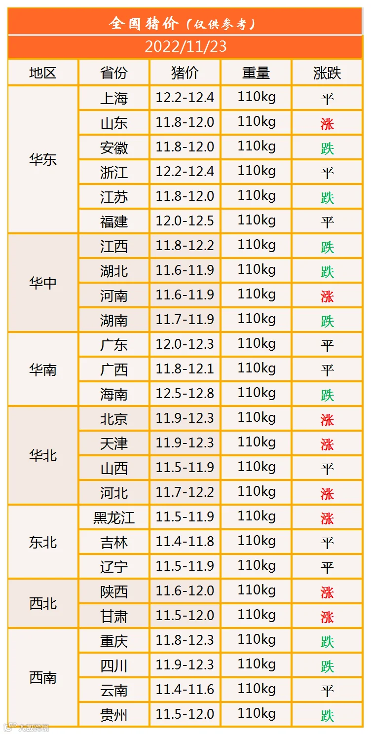 明日猪价2022年11月23日猪价信息