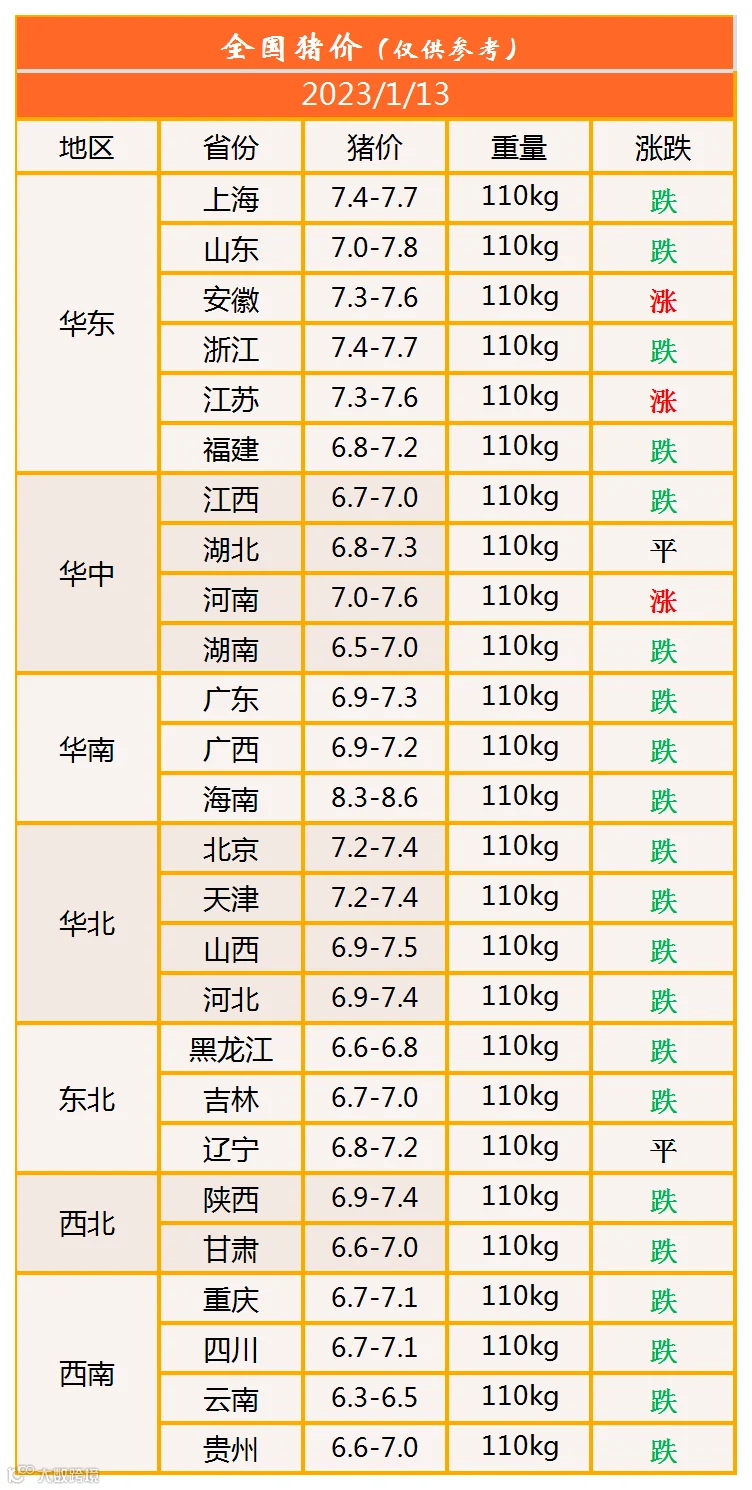 明日猪价2023年1月13日猪价信息
