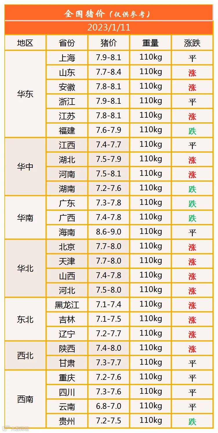 明日猪价2023年1月11日猪价信息