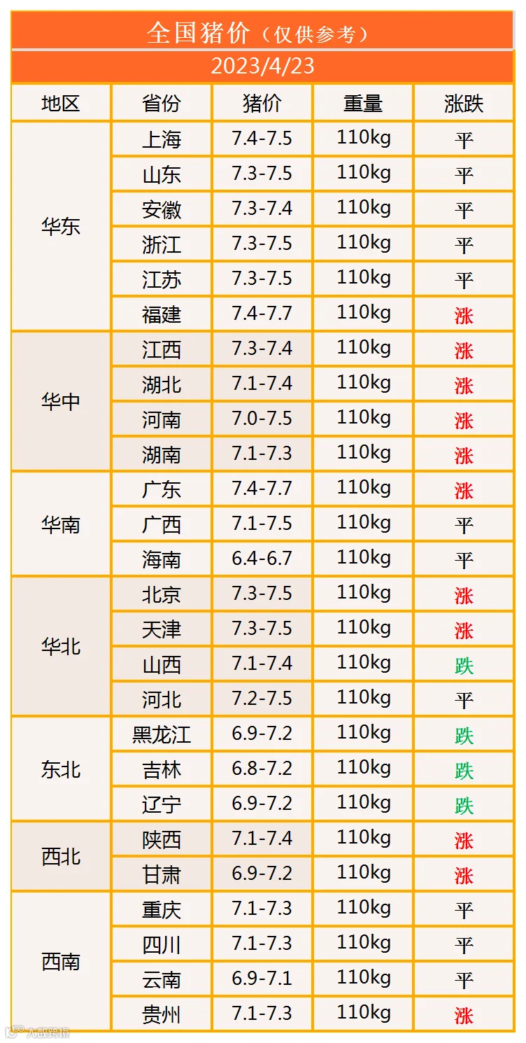 明日猪价2023年4月23日猪价信息