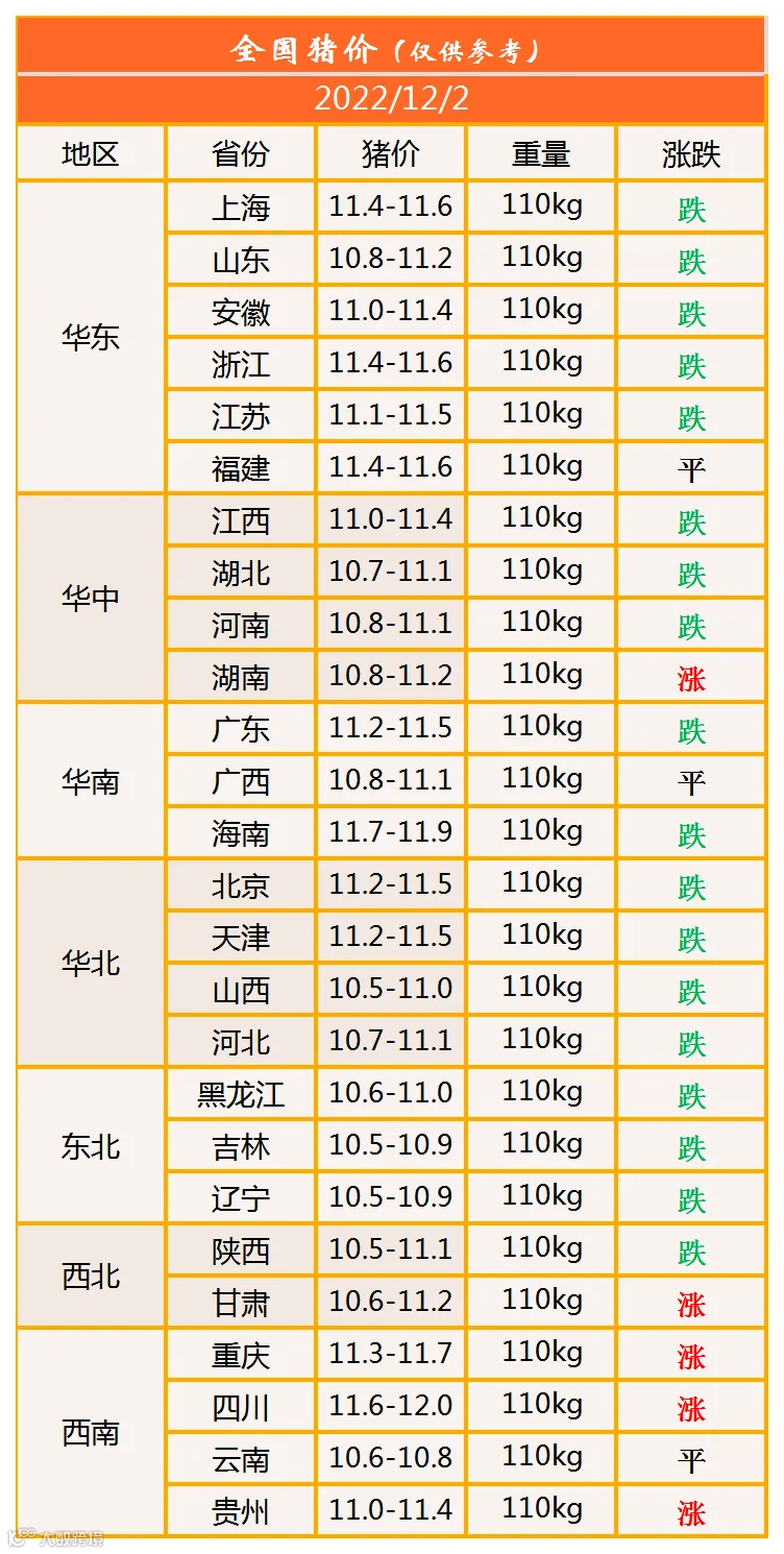 明日猪价2022年12月2日猪价信息