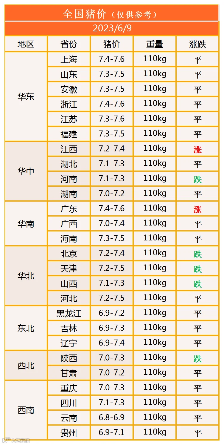 明日猪价2023年6月9日猪价信息