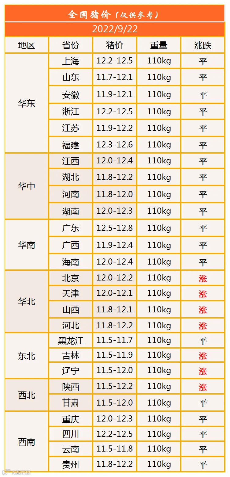 明日猪价2022年9月22日猪价信息