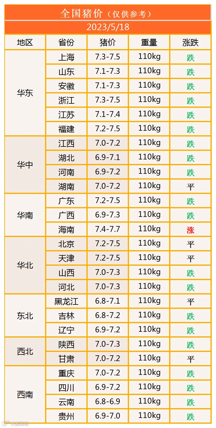 明日猪价2023年5月18日猪价信息