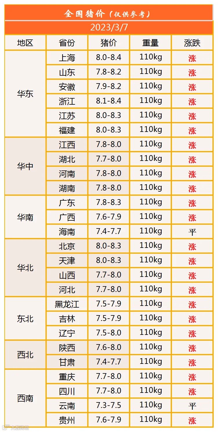 明日猪价2023年3月7日猪价信息