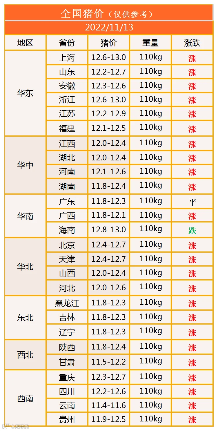 明日猪价2022年11月13日猪价信息
