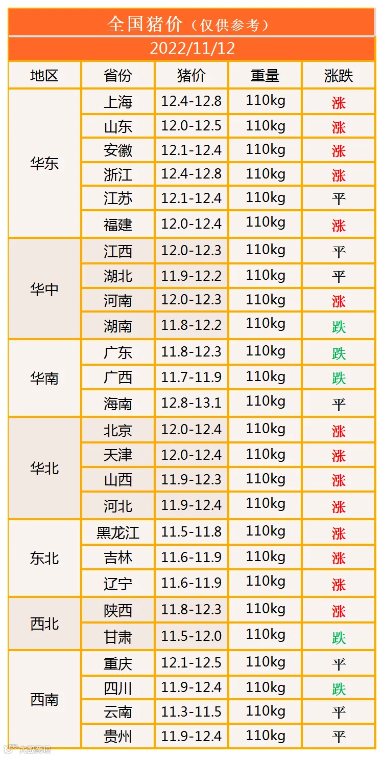 明日猪价2022年11月12日猪价信息