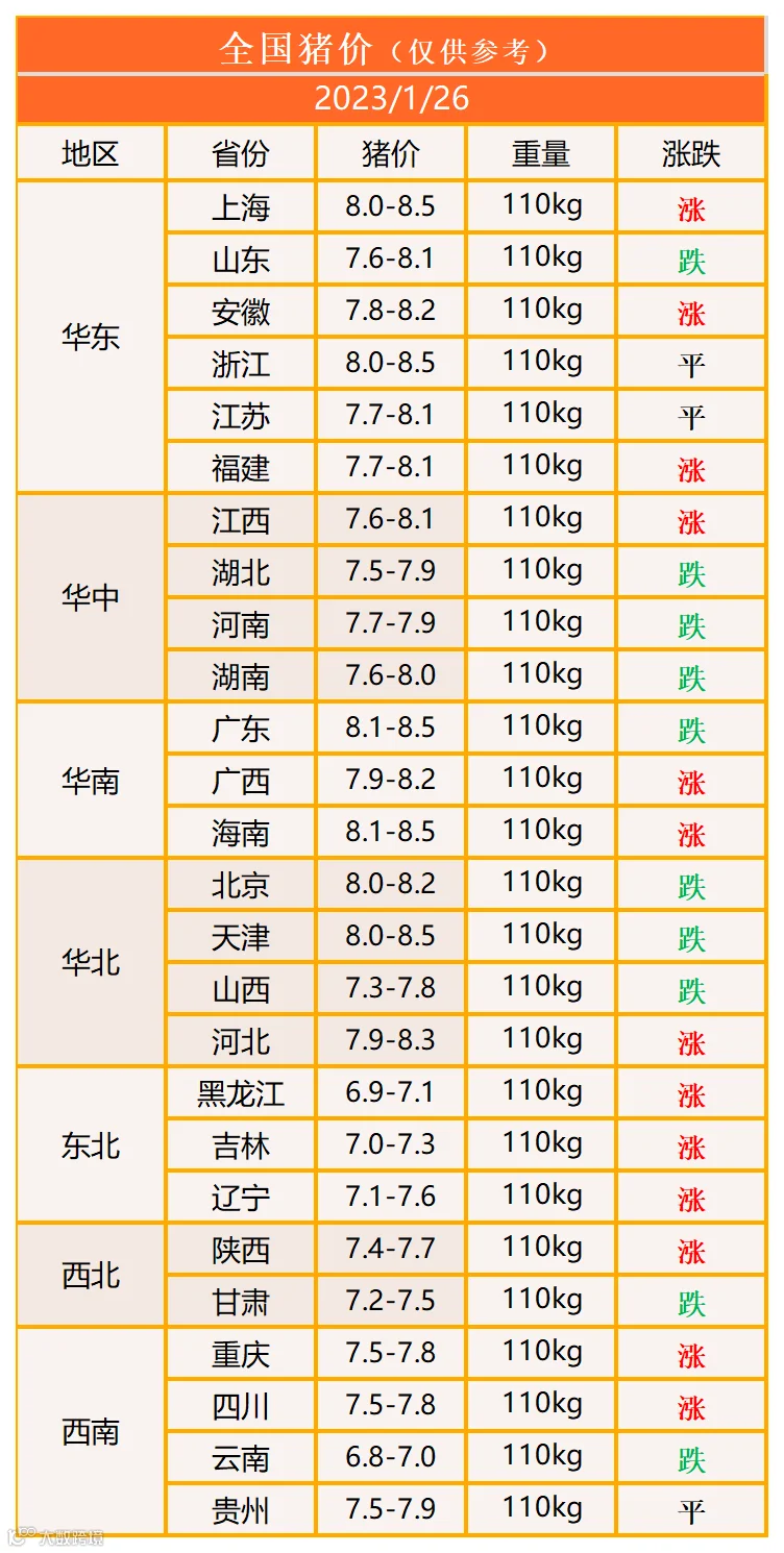 明日猪价2023年1月26日猪价信息