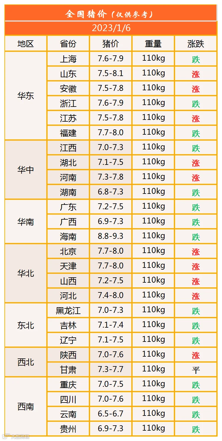 明日猪价2023年1月6日猪价信息