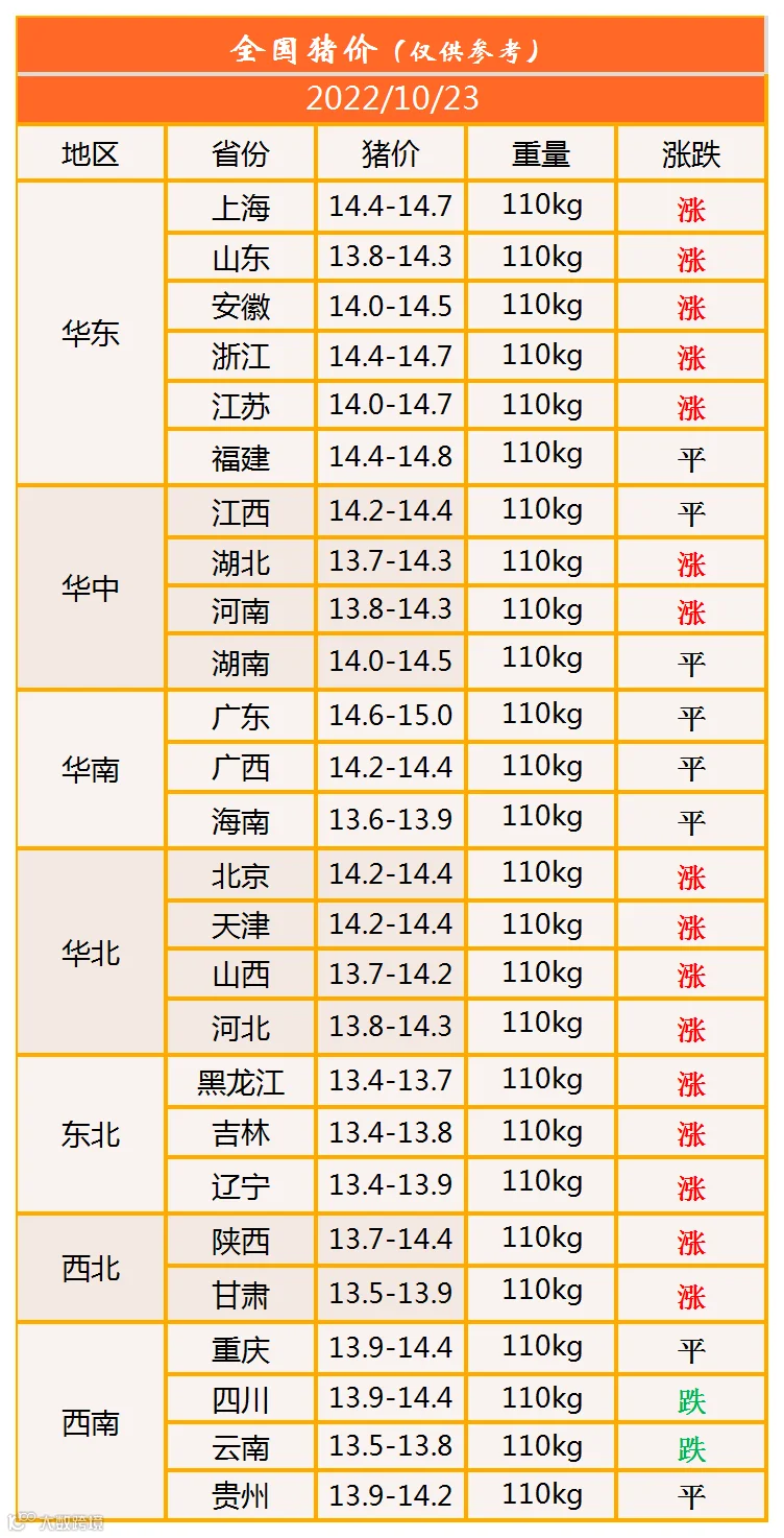明日猪价2022年10月23日猪价信息