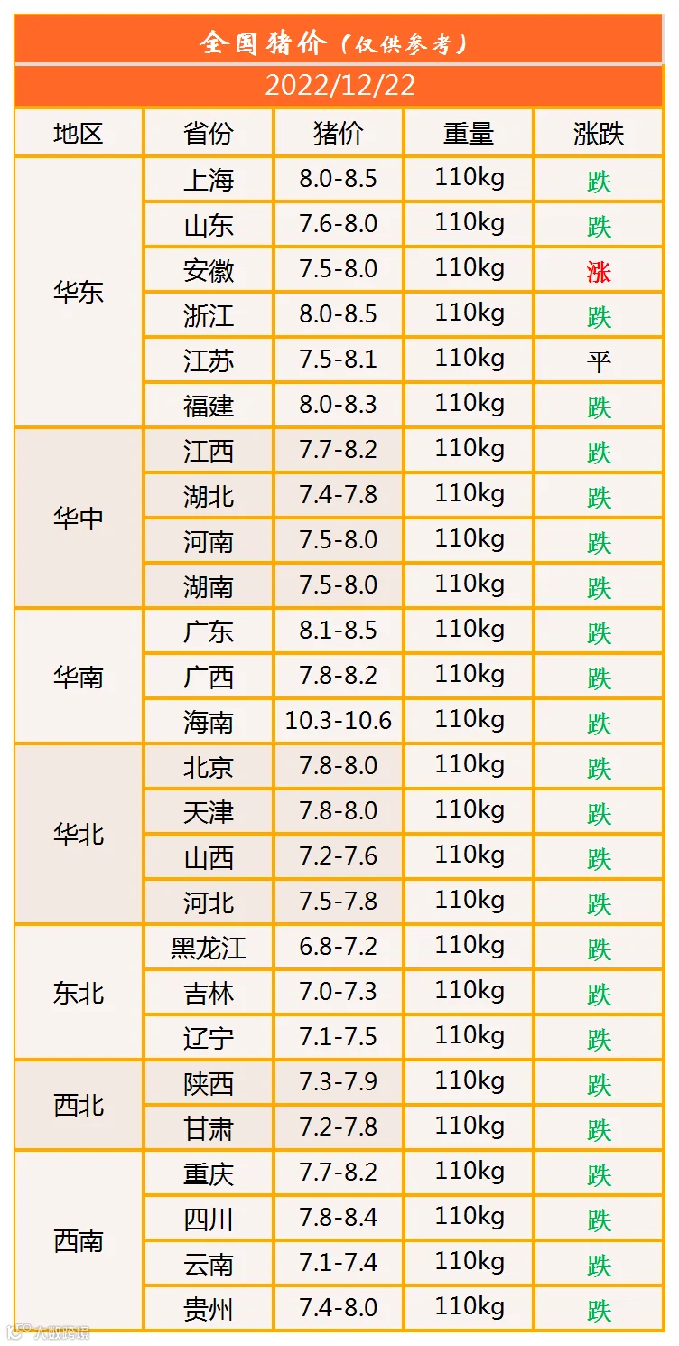 明日猪价2022年12月22日猪价信息