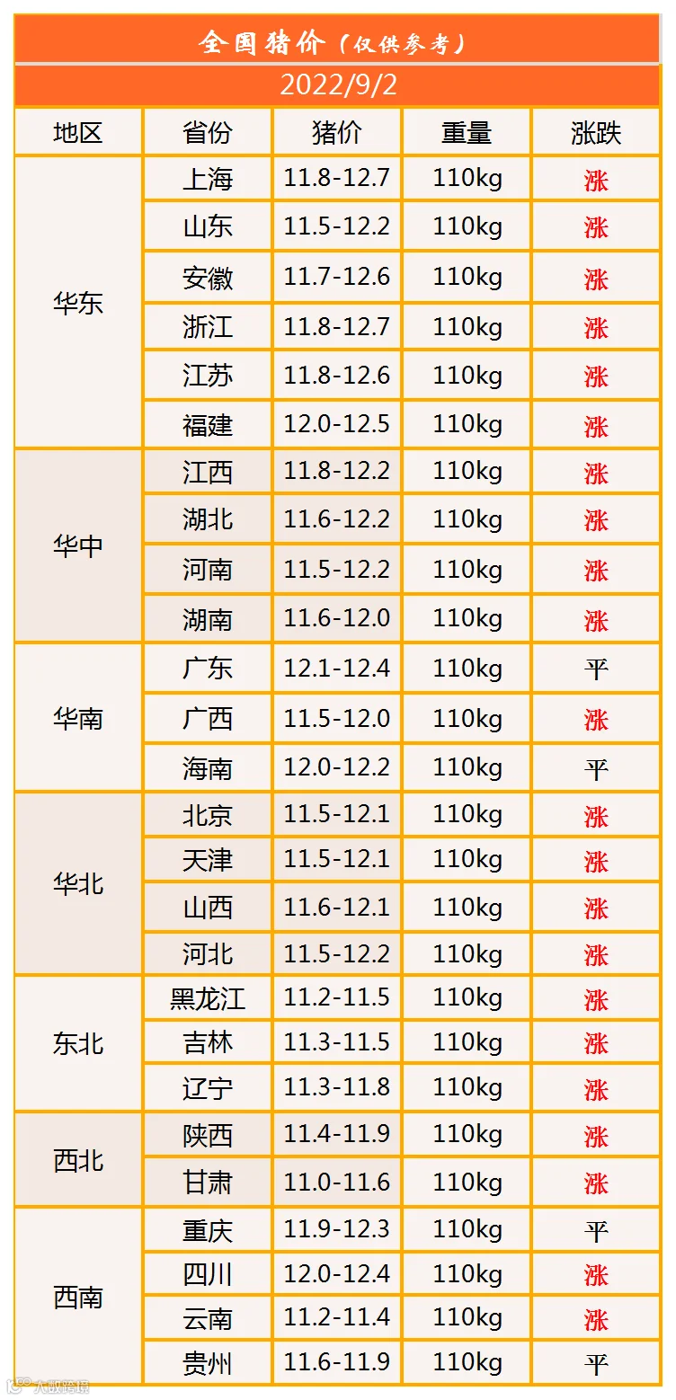 明日猪价2022年9月2日猪价信息