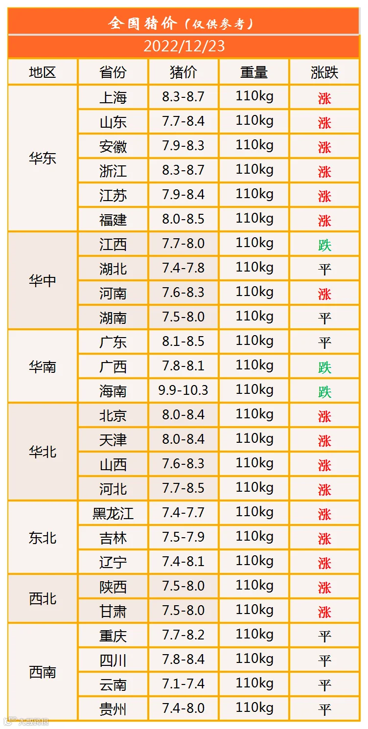 明日猪价2022年12月23日猪价信息