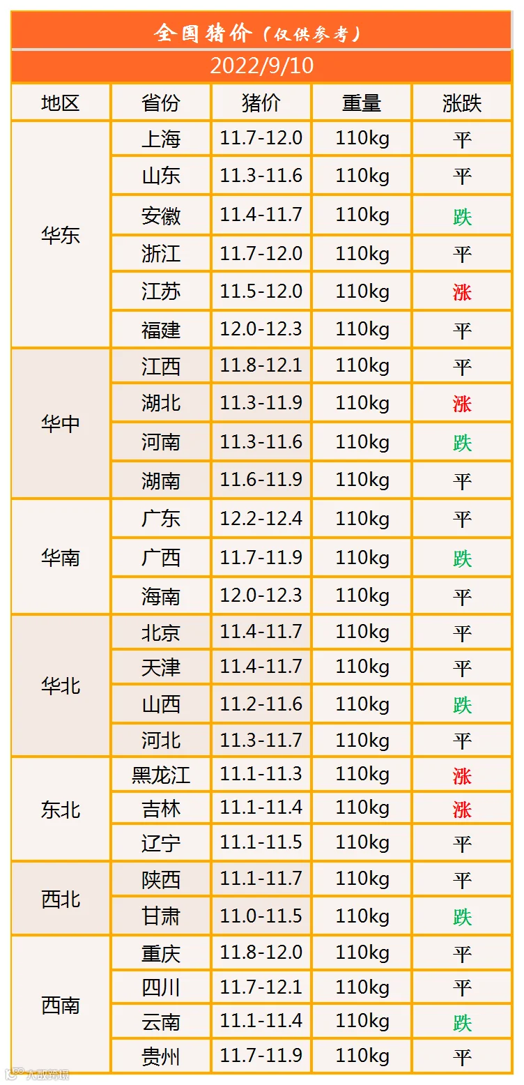 明日猪价2022年9月10日猪价信息