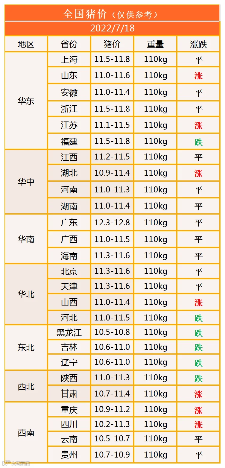 明日猪价2022年7月18日猪价信息