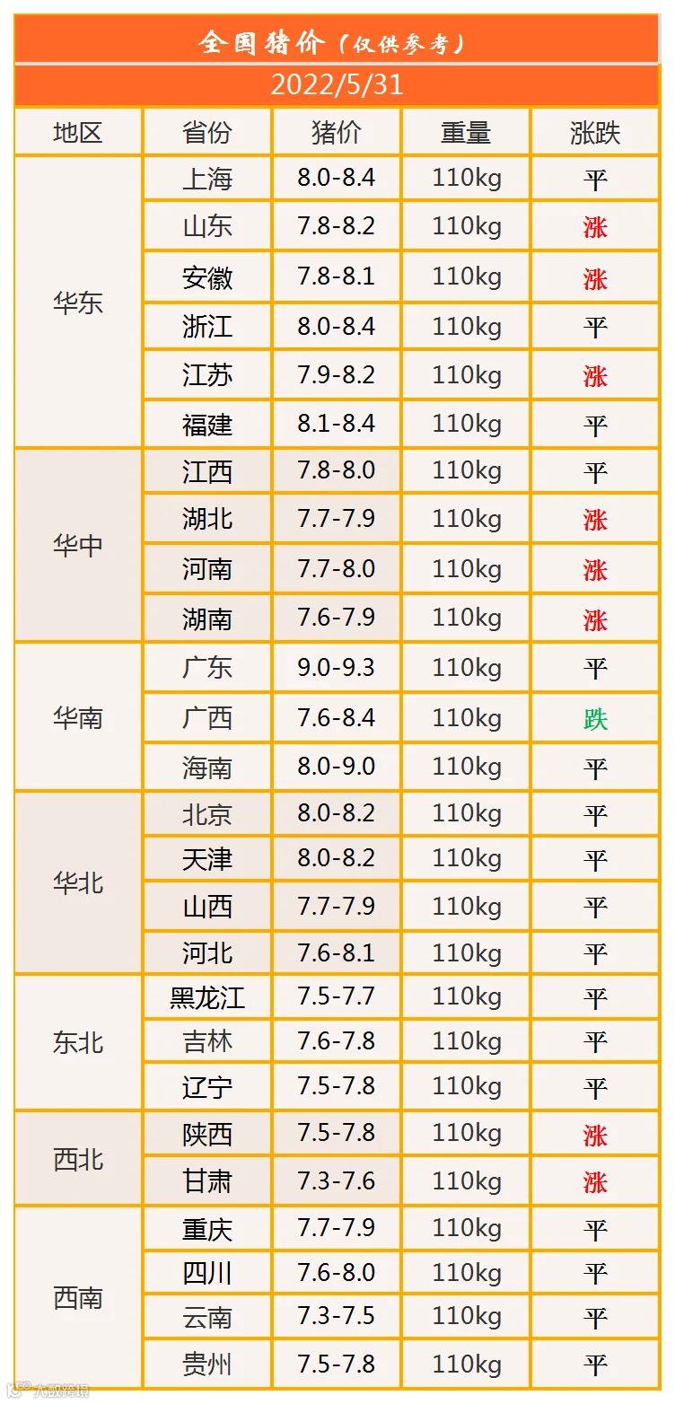 明日猪价2022年5月31日猪价信息