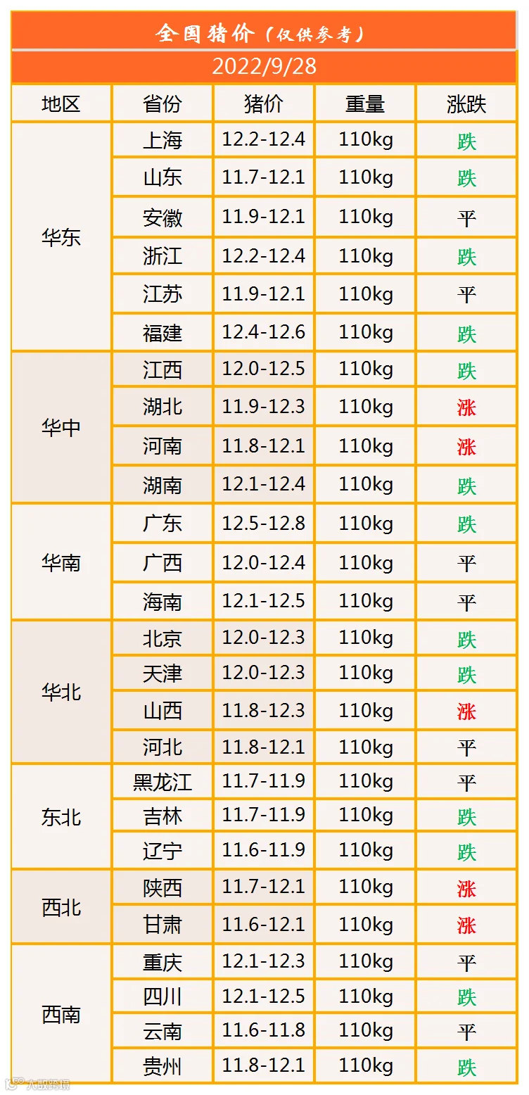 明日猪价2022年9月28日猪价信息