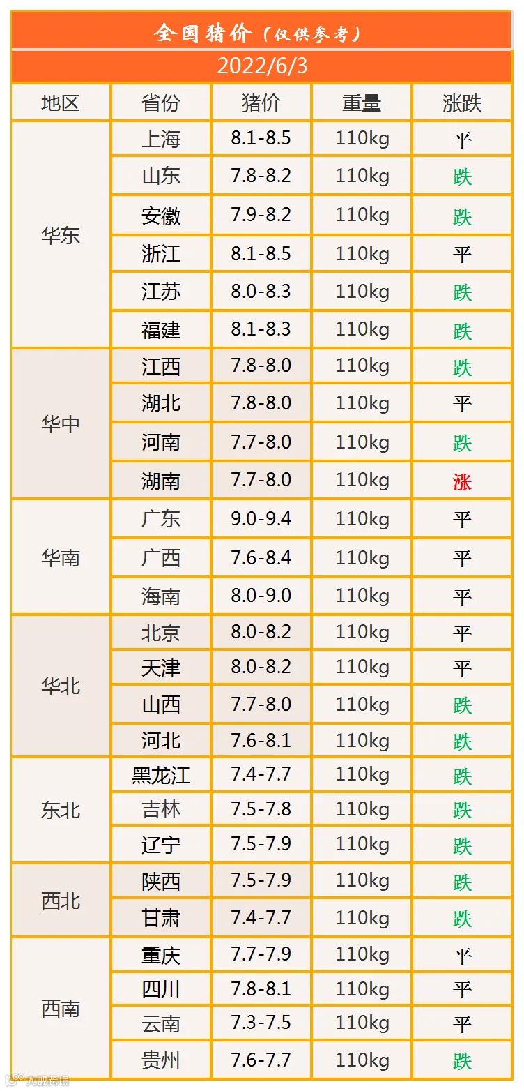 明日猪价2022年6月3日猪价信息