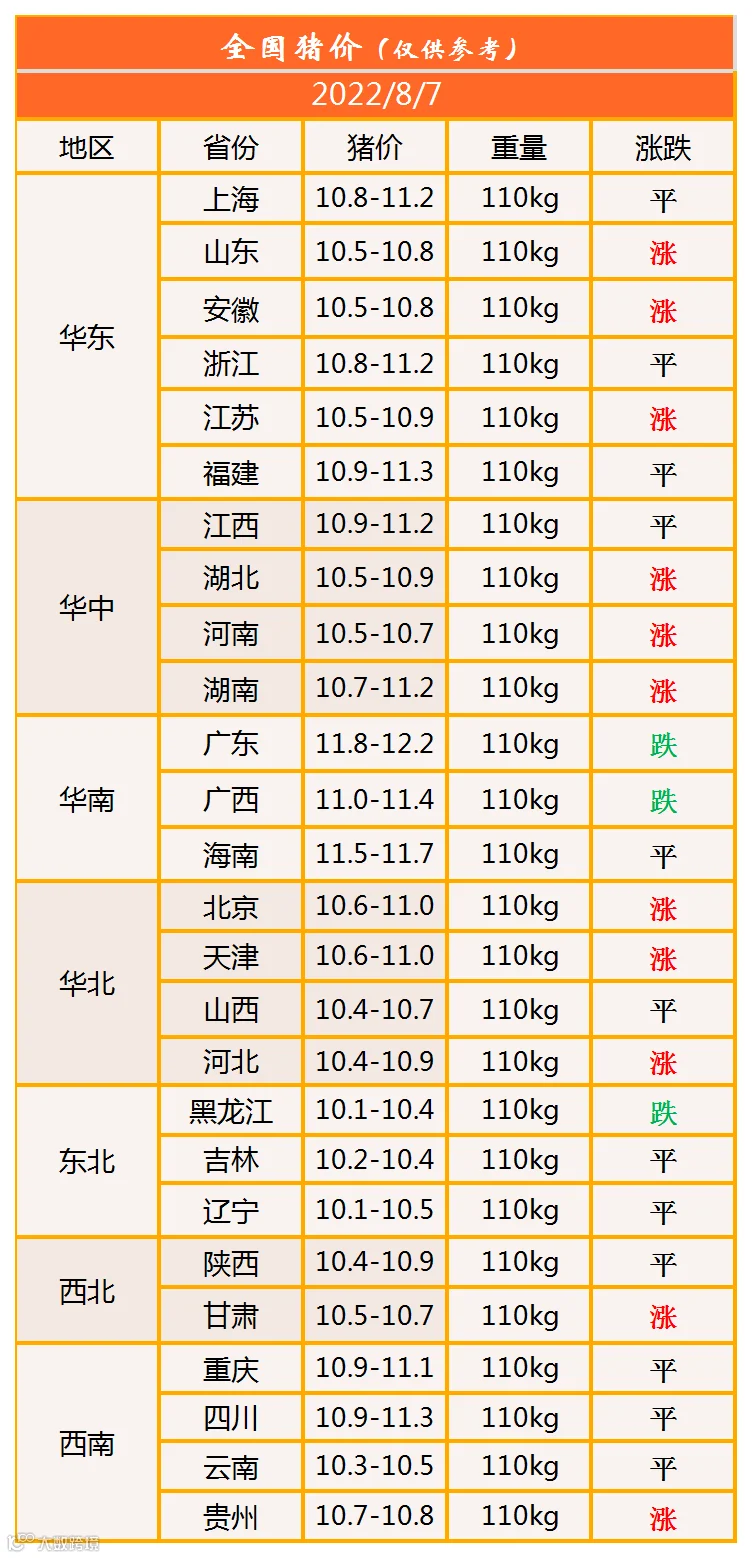 明日猪价2022年8月7日猪价信息