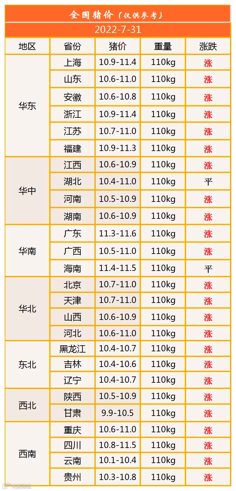 明日猪价2022年7月31日猪价信息