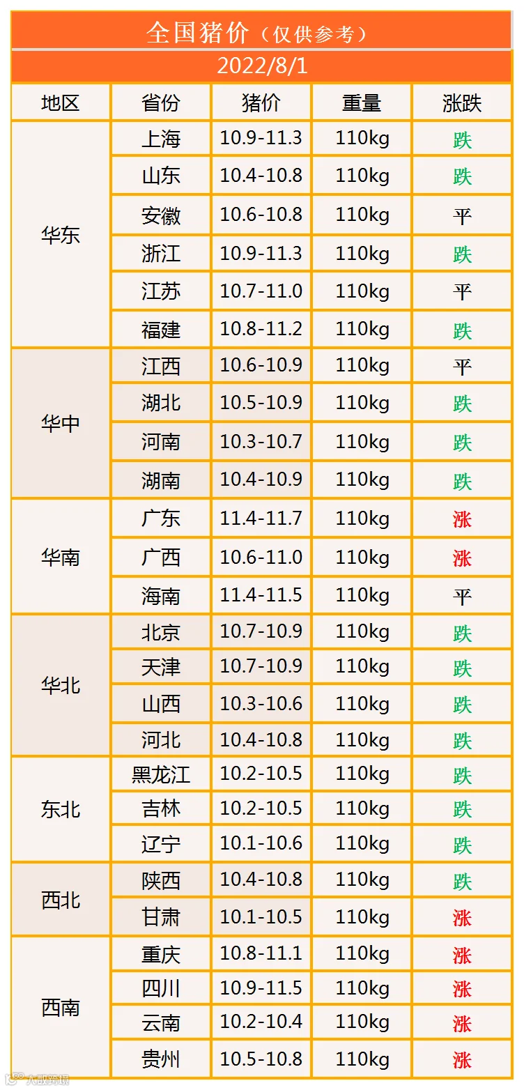 明日猪价2022年8月1日猪价信息
