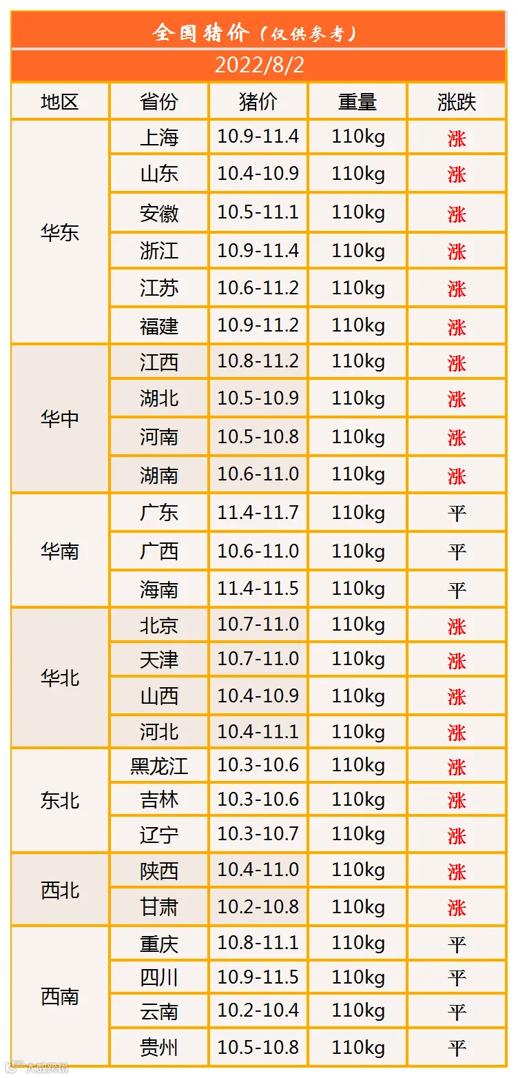 明日猪价2022年8月2日猪价信息