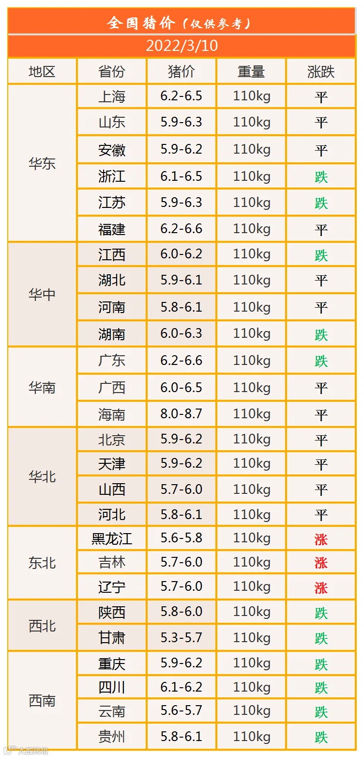 明日猪价2022年3月10日猪价信息