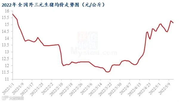 5月14日,国家统计局数据,生猪(外三元)的价格达到14.9元/公斤,这是生猪价格从3月下旬以来,连续第五轮环比上涨。