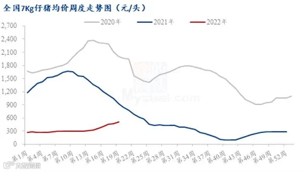 “另外,能繁母猪的最高点在2021年6、7月份,以母猪怀孕分娩、仔猪育肥、生猪出栏共10个月为一个周期来看,生猪出栏量的最高点在今年5月份前后,这意味着这一轮生猪养殖的产量最高点也已经步入尾声。我们可以判断,目前已经过了前一轮猪周期的底部,大概率不会再出现如去年最低点那么低的价格,新一轮的周期已经来临。”卓创资讯生猪行业分析师朱泽坤指出。