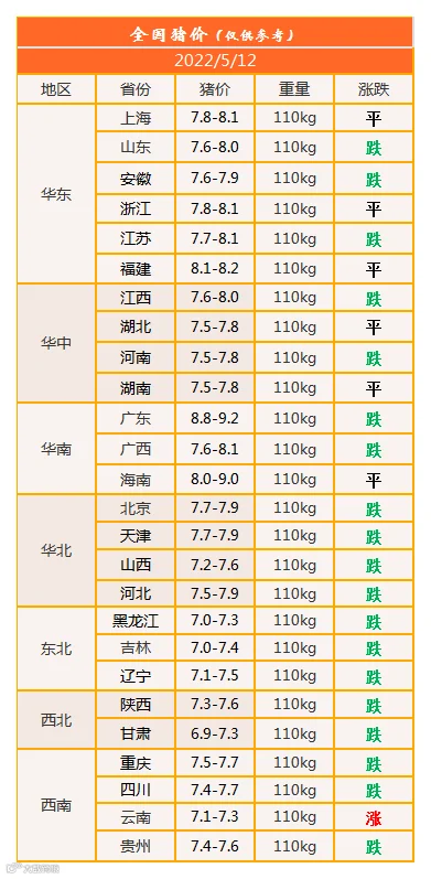 明日猪价2022年5月12日猪价信息