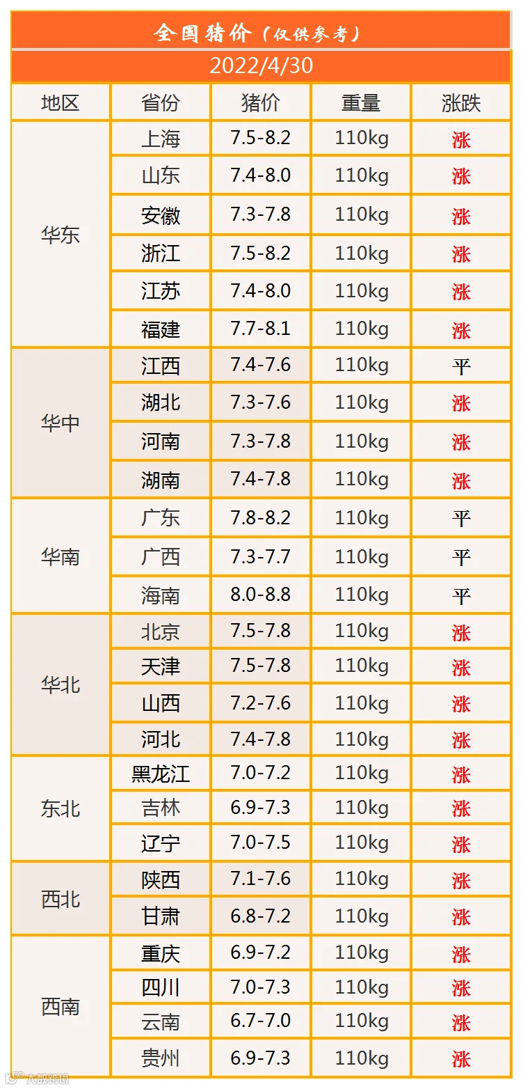 明日猪价2022年4月30日猪价信息