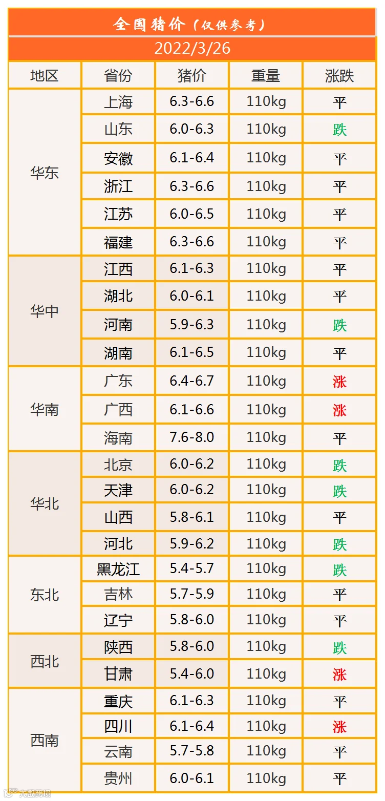 明日猪价2022年3月26日猪价信息