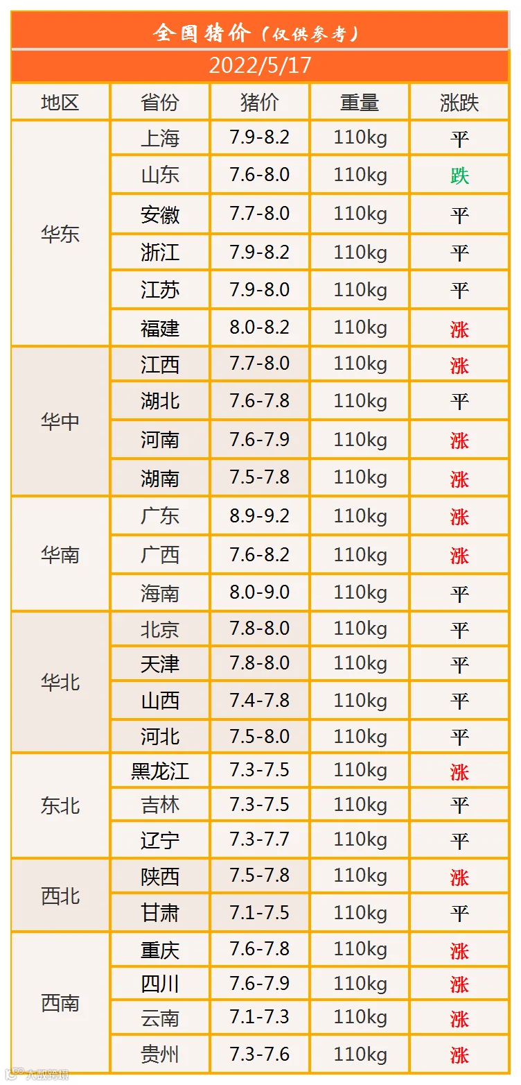 明日猪价2022年5月17日猪价信息