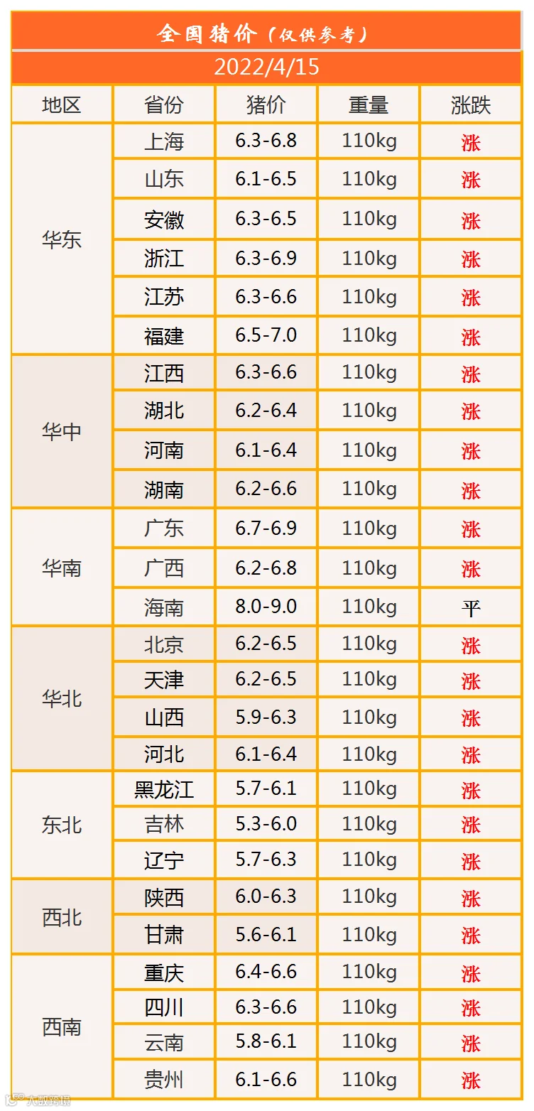 明日猪价2022年4月15日猪价信息