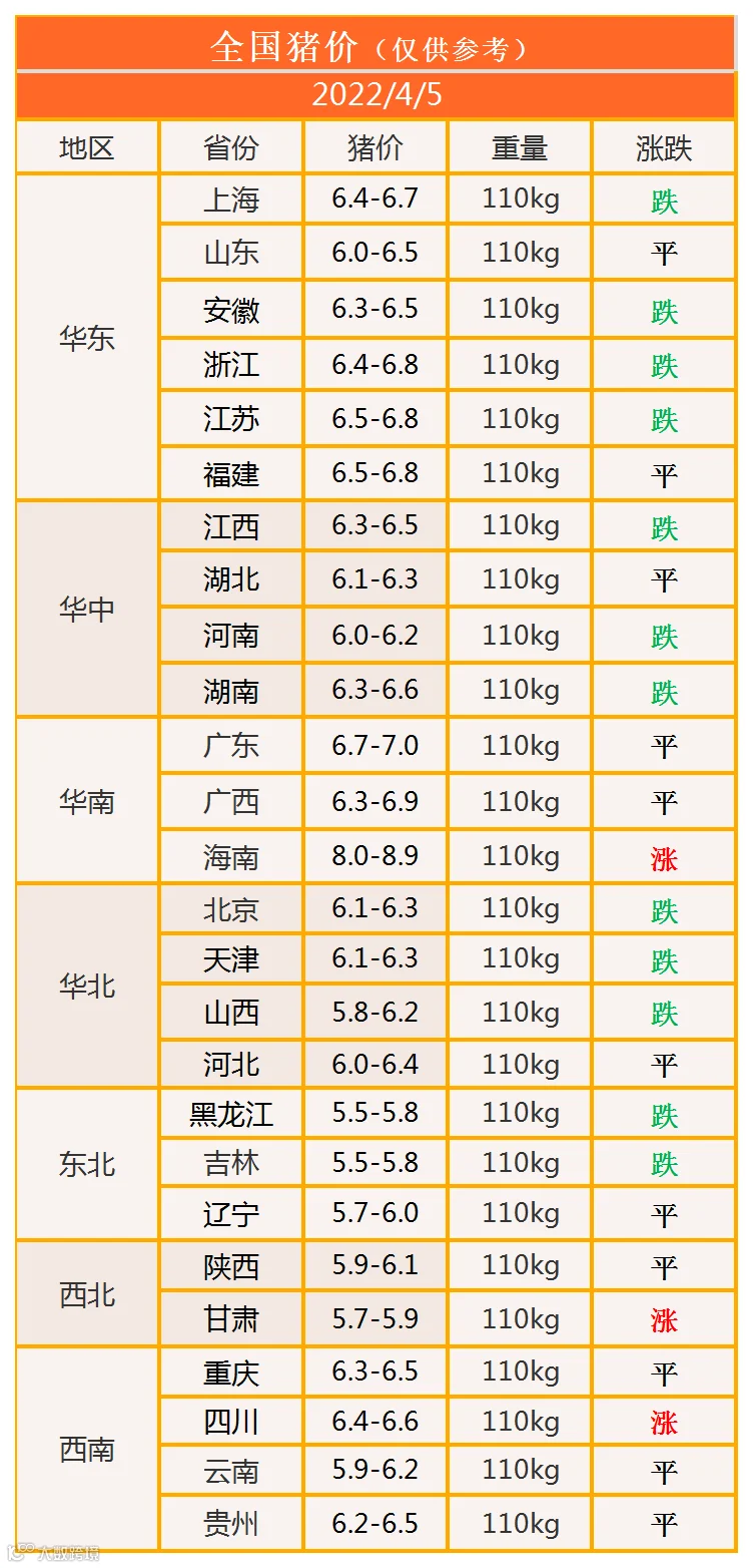 明日猪价2022年4月5日猪价信息
