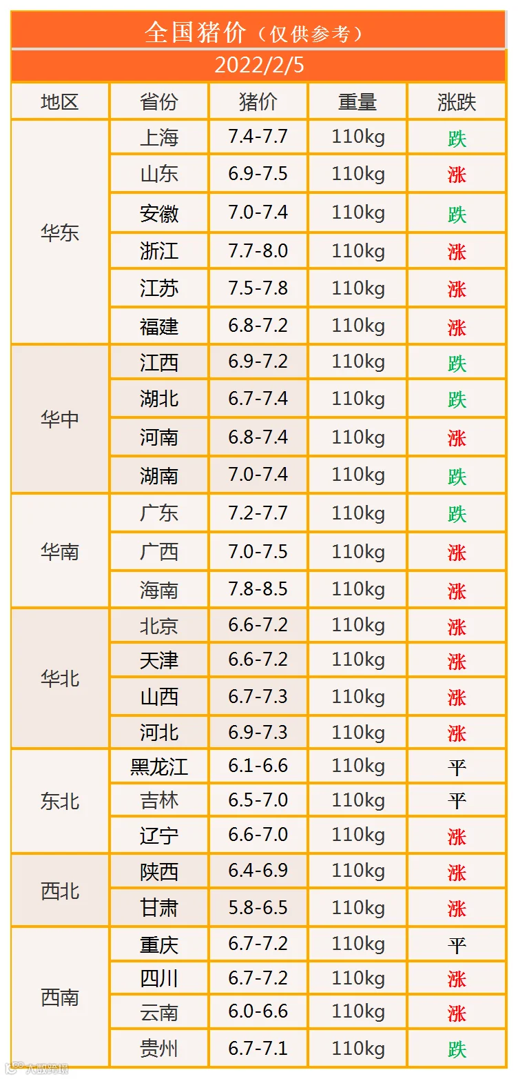 明日猪价2022年2月5日猪价信息