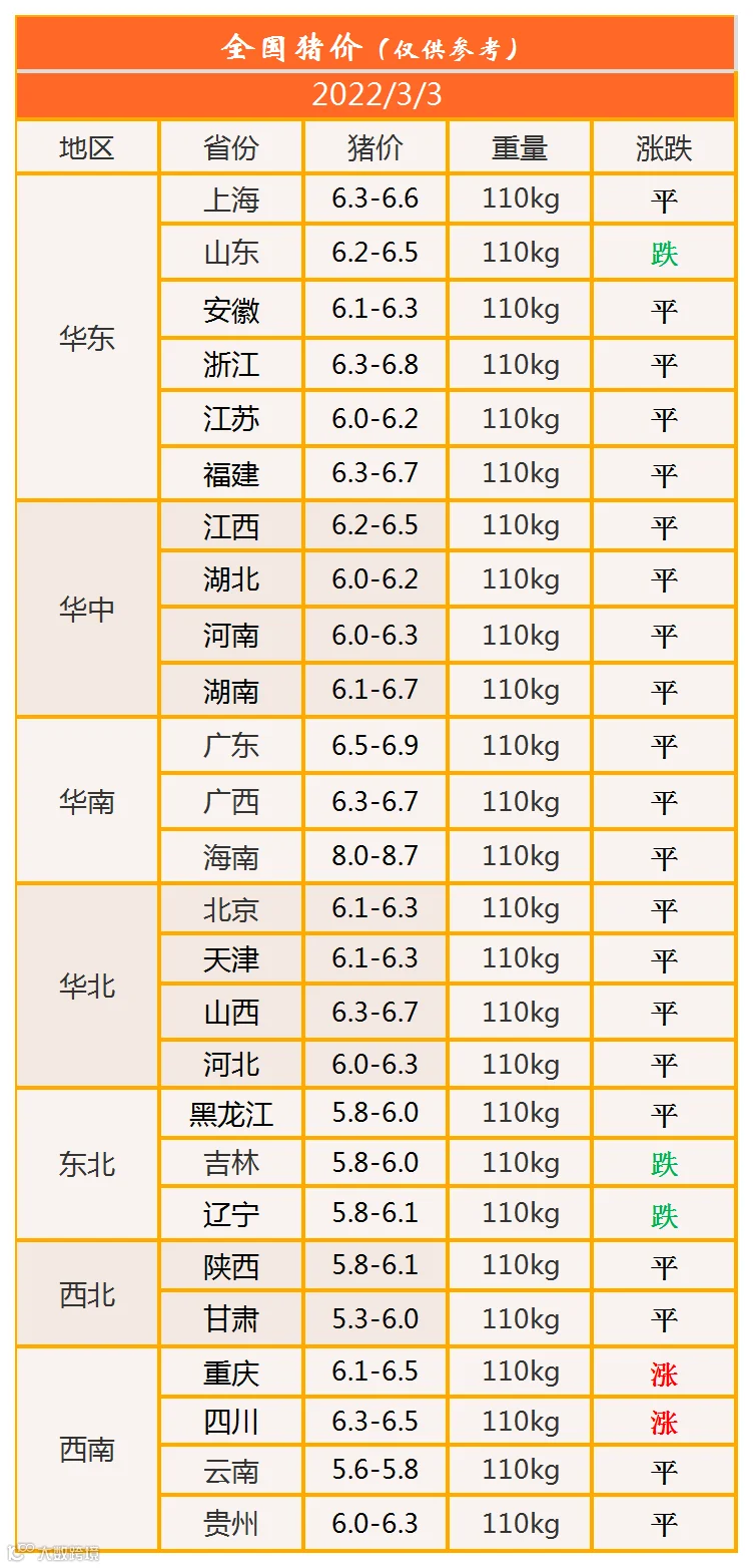 明日猪价2022年3月3日猪价信息