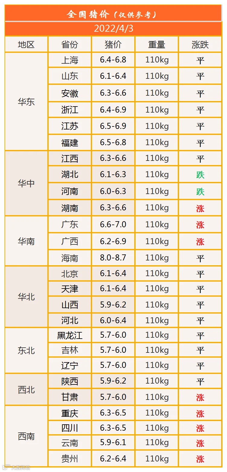 明日猪价2022年4月3日猪价信息