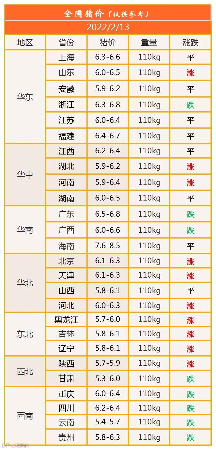明日猪价2022年2月13日猪价信息