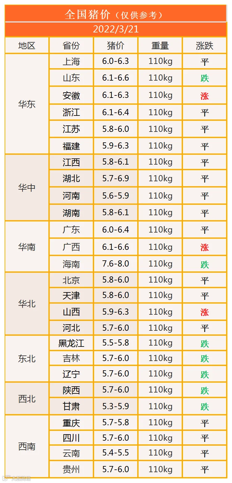 明日猪价2022年3月21日猪价信息