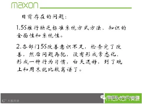 针对5S问题,各部门分别作了检讨,也对下一步部门5S推进工作提出可行性改善措施。