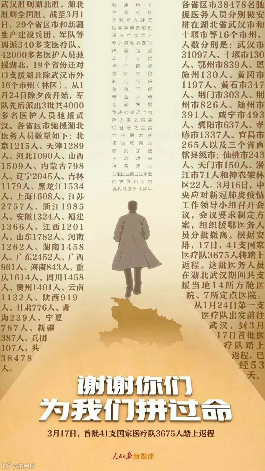 导读:3月17日,首批41支国家医疗队人员踏上返程