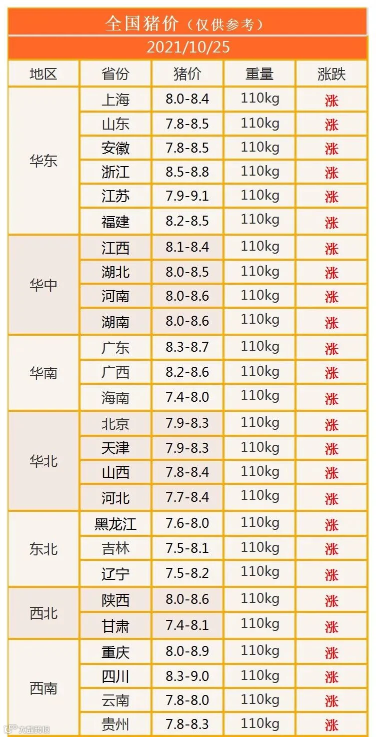 明日猪价2021年10月25日猪价信息