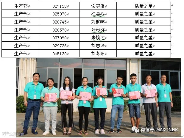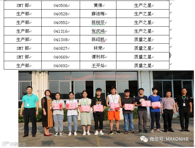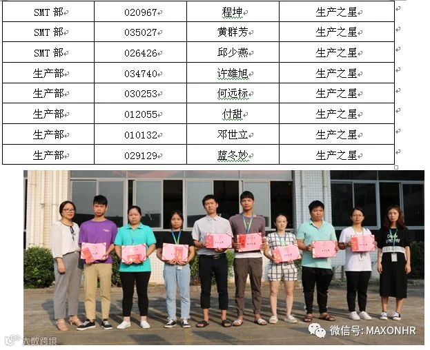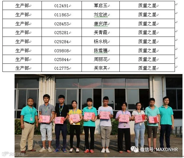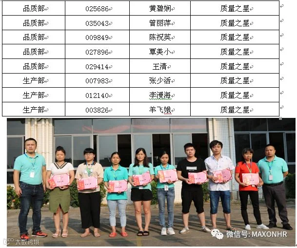 8月份生产之星与质量之星合影留念