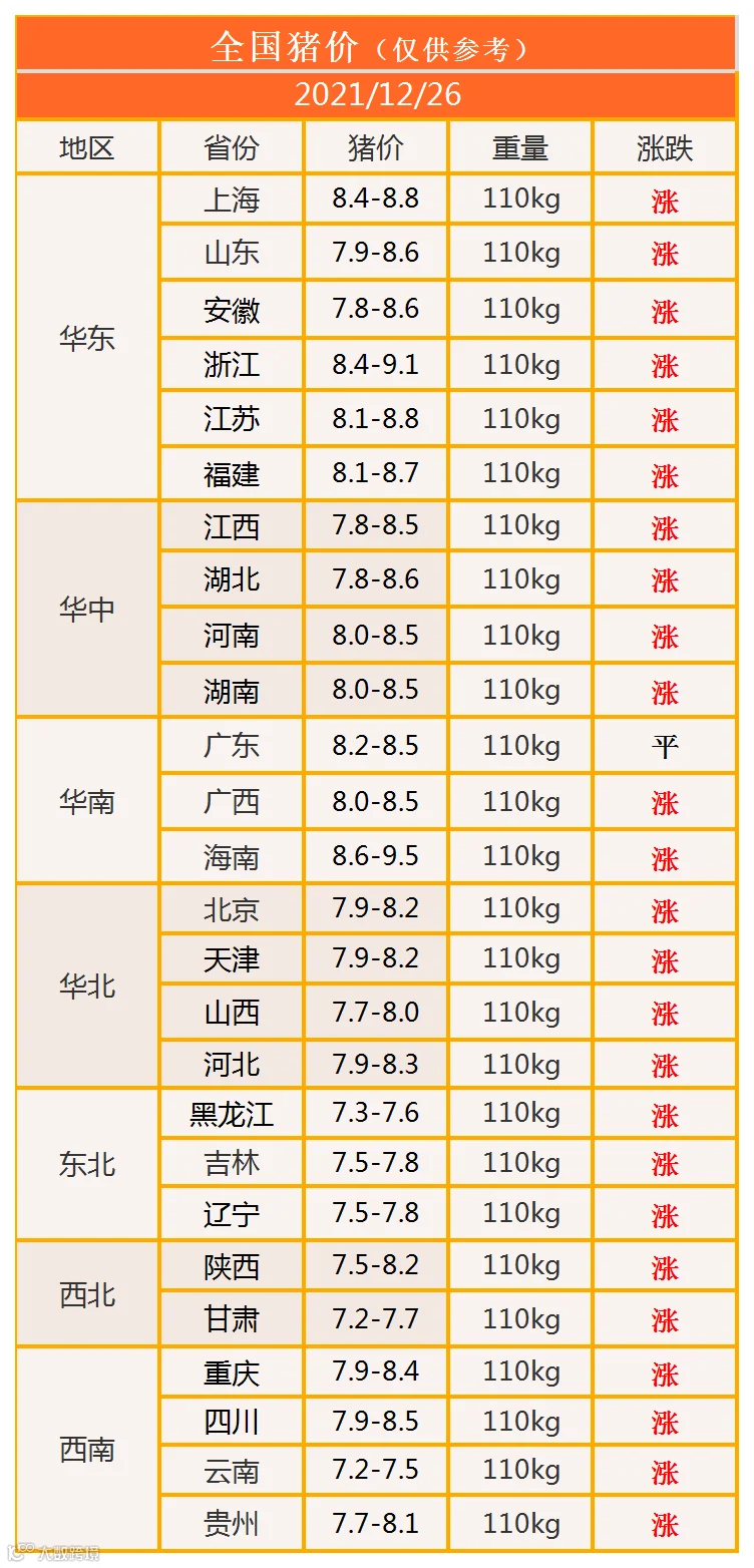 明日猪价2021年12月26日猪价信息