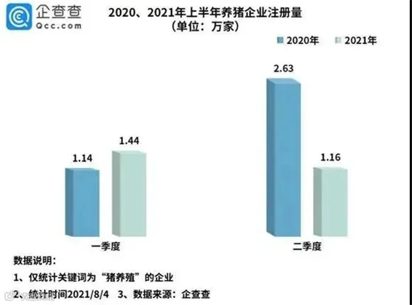 今年上半年共新增养猪企业2.6万家,同比下降31%。其中一季度注册量达1.44万家,同比增长25%。二季度注册量达1.16万家,环比下降56%。